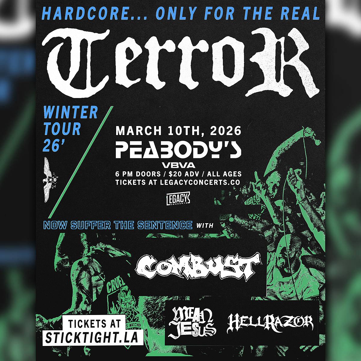 Tue Mar 10 Terror with Combust, Mean Jesus, Hell Razor Doors: 6:00 PM | Show: 7:00 PM Peabody's Nightclub Virginia Beach, VA All Ages TICKETS